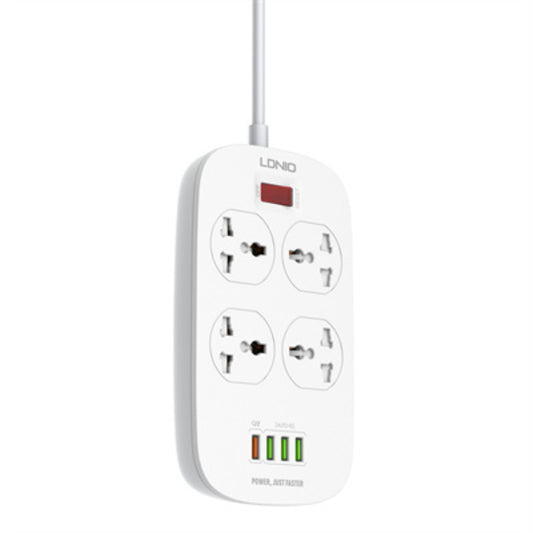 LDNIO SC4408 | 4 AC Outlet Universal Power Strip, 2500W, 4 USB Ports, Overload Protector, EU/UK/US Plug