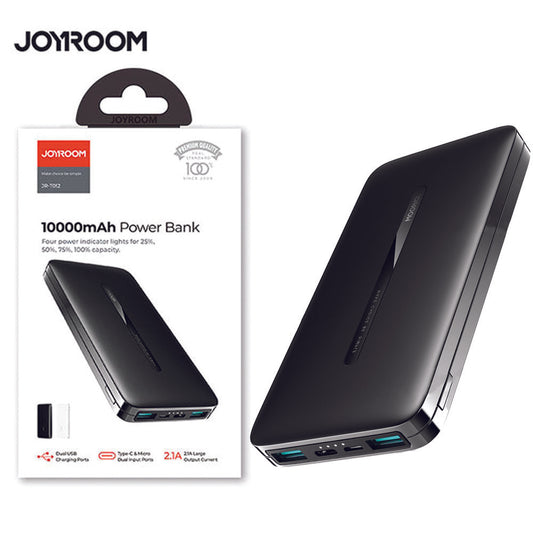 Joyroom JR‑T012 | 10000 mAh Power Bank | Dual USB 2.1 A Output | Slim Flame‑Retardant Shell | Black / White