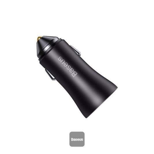 Baseus Golden Contactor Max | Car Charger | Dual Port (USB-A + USB-C) | 60W Total Output | PD + QC Fast Charging | Smart Power Distribution | Dark Gray | For iPhone, Android, iPad, Dashcams
