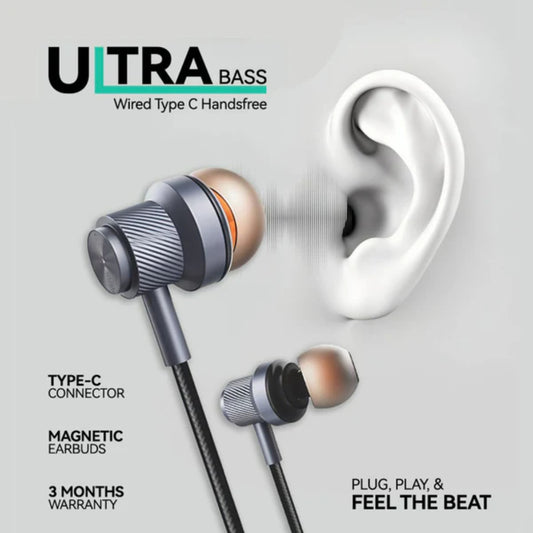 Amaze A692 | Ultra Bass Wired Type-C Handsfree with Magnetic Buds | Mic, In-Line Controls & Tangle-Free Cable