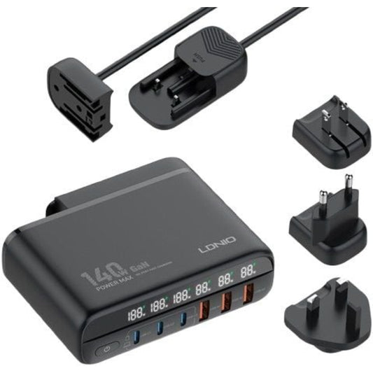 LDNIO A6140C | 140W GaN Super Fast Desktop Charger, 6 Ports, LED Display, PD & QC, Universal Plug