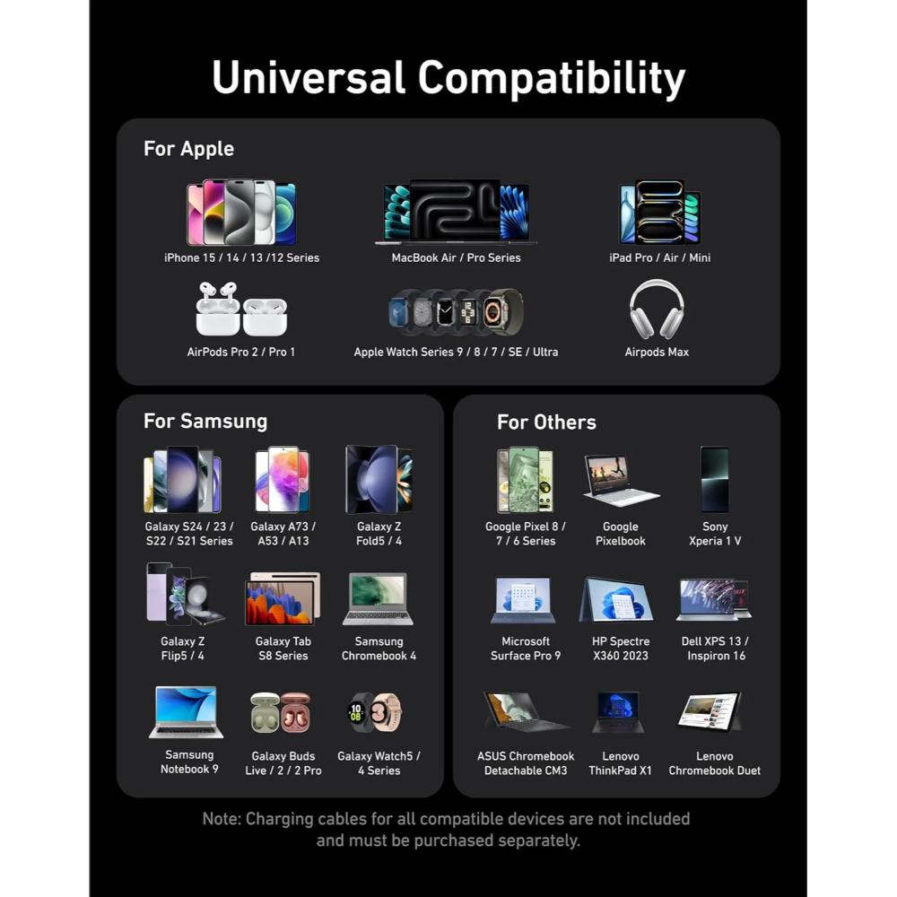 | Compatibility | MacBook Pro, Dell XPS, iPhone, Galaxy, iPad, USB-C Devices |