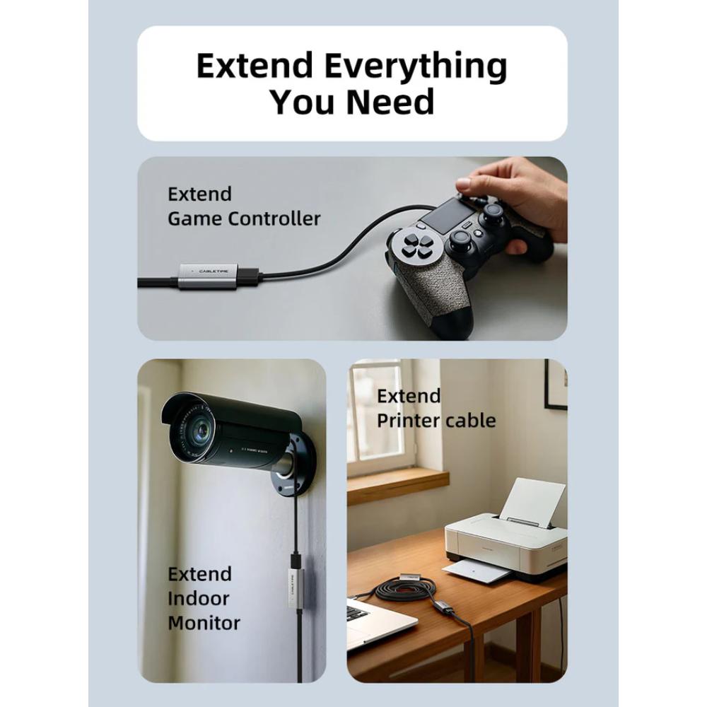 CABLETIME CA19 | Active USB 2.0 A Male to A Female Extension Cable | 480Mbps Data Transfer | Aluminum Shell | Multiple Length Options
