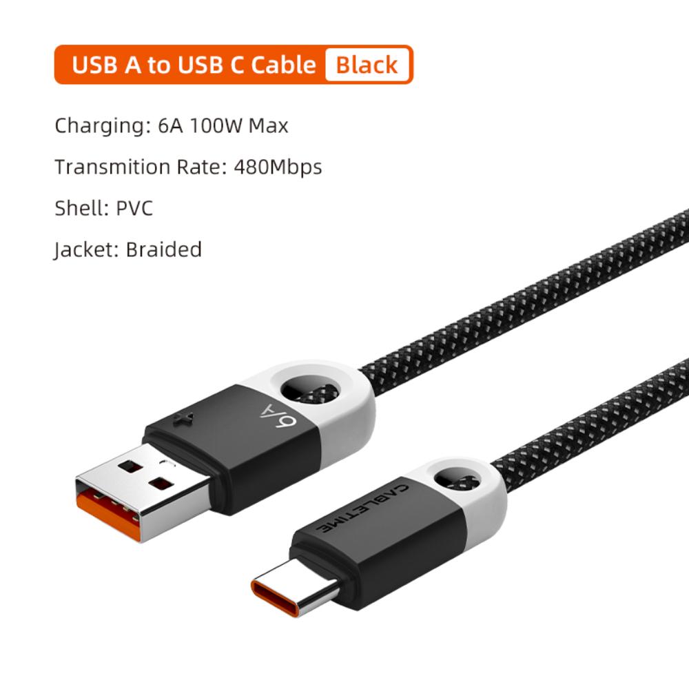 CABLETIME CAP1J | 6A USB-A to USB-C Fast Charge Braided Cable (1.5m)
