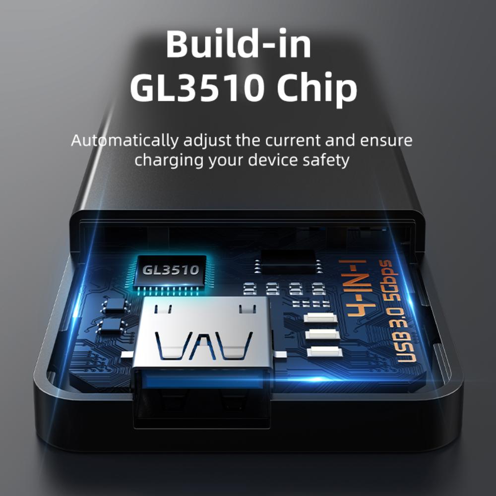 The CABLETIME CB01B 4-Port USB-A 3.0 Hub is designed to expand your laptop or desktop connectivity with high-speed data transfer and reliable power support. Featuring a transparent shell design and a built-in GL3510 chipset, this USB hub offers stable performance, fast transmission, and universal compatibility for Windows, macOS, and Linux systems.