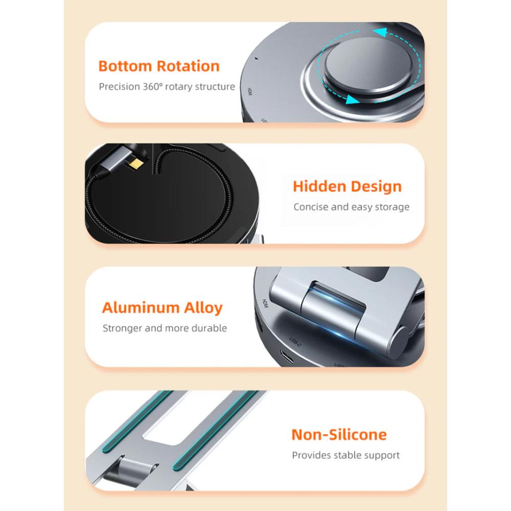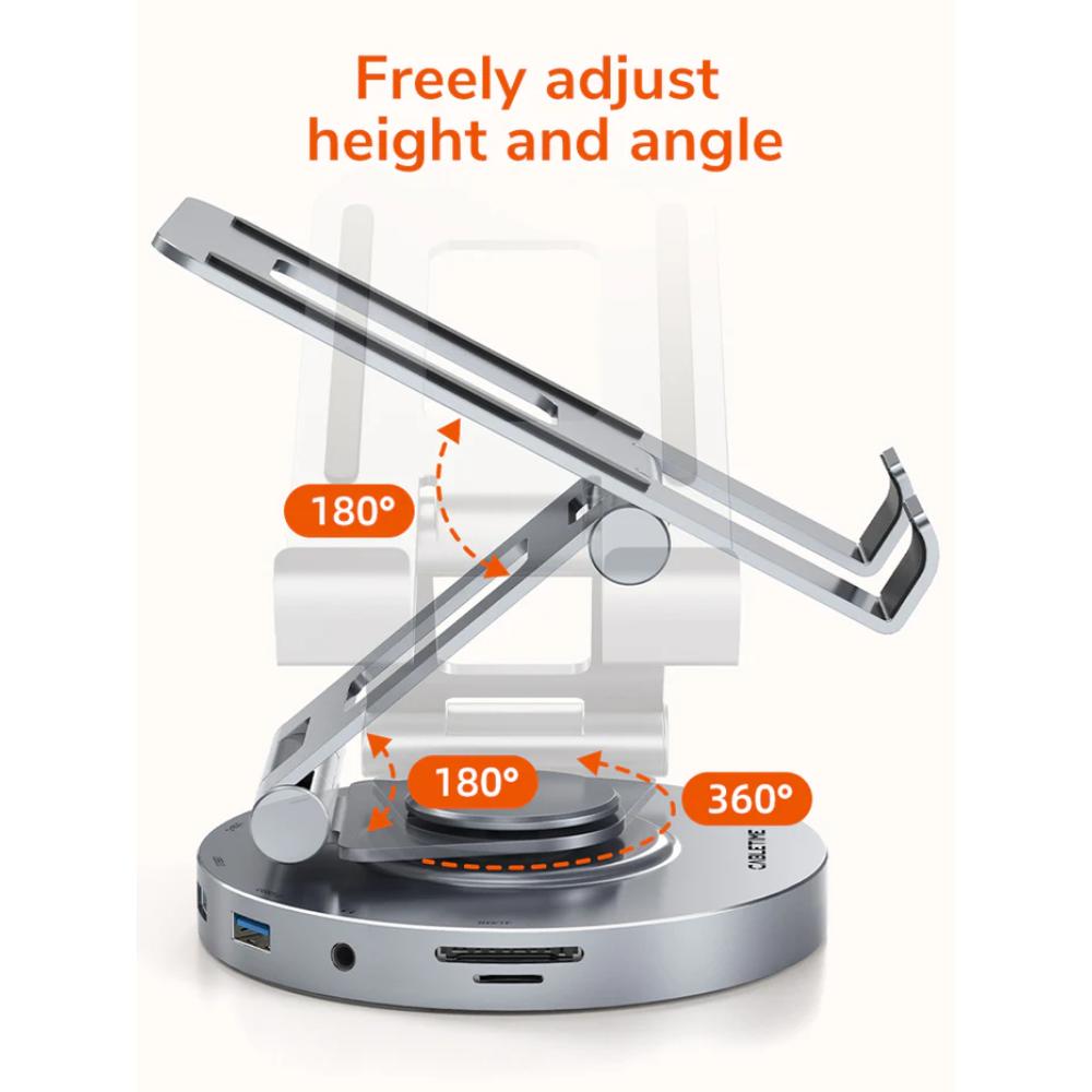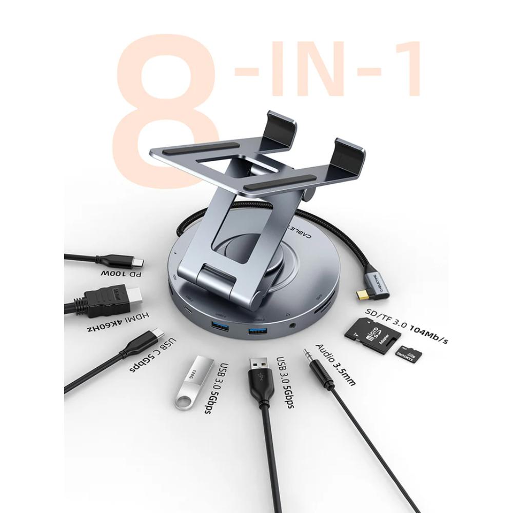 CABLETIME CB02G | 8-in-1 USB-C Docking Station with Stand for iPad Pro & Air | 4K@60Hz HDMI, 100W PD, 5Gbps USB, 360° Adjustable Aluminum Design