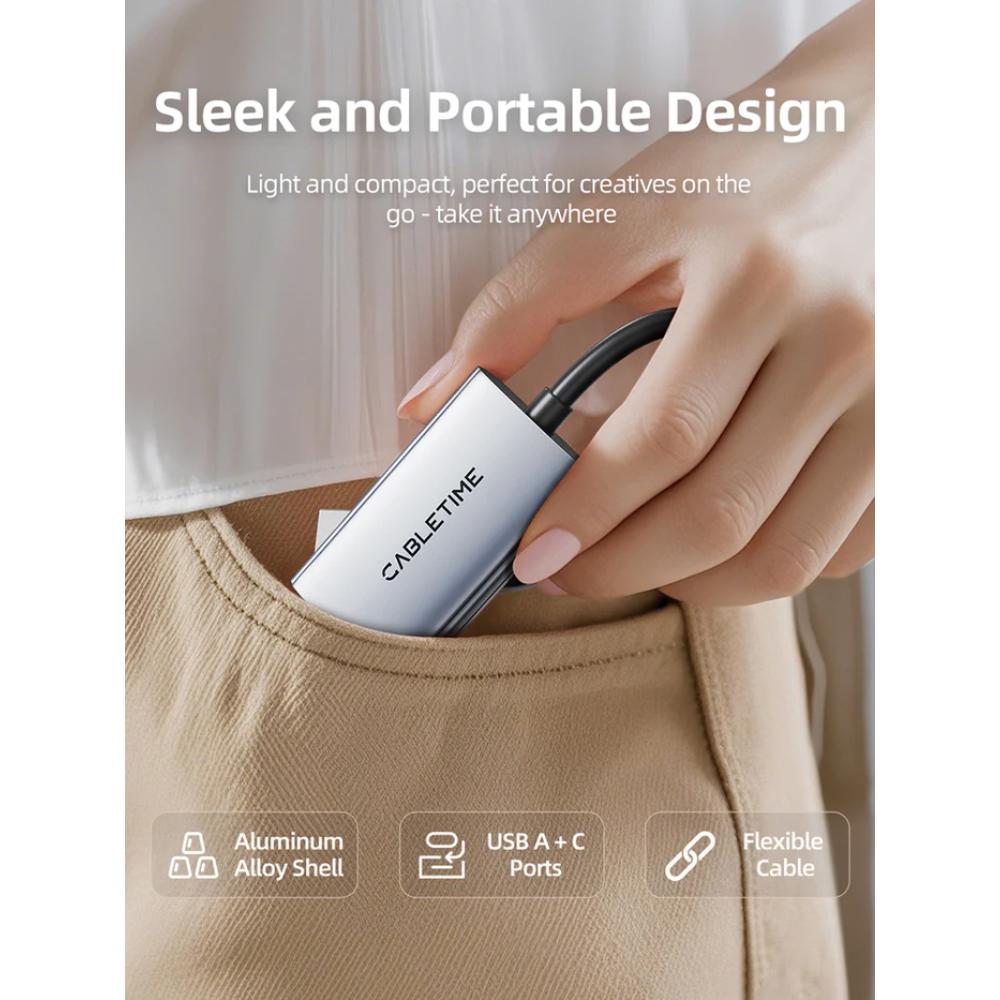 CABLETIME CB65G USB A+C to HDMI Video Capture Card | 1080P60Hz Output | 4K Input | Dual USB Interface | Aluminum Alloy Shell
