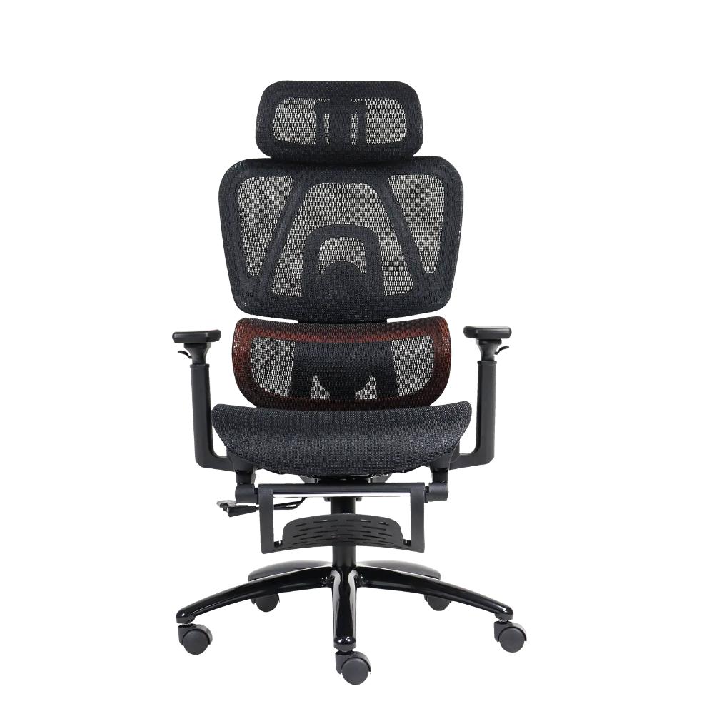 It features a 2D adjustable headrest, adjustable backrest height, ergonomic lumbar support, 3D armrests, and a retractable footrest, delivering a perfect balance between active seating and relaxation. A durable alloy base, SGS-certified gas lift, and silent smooth-rolling wheels ensure stability, safety, and long-term reliability.