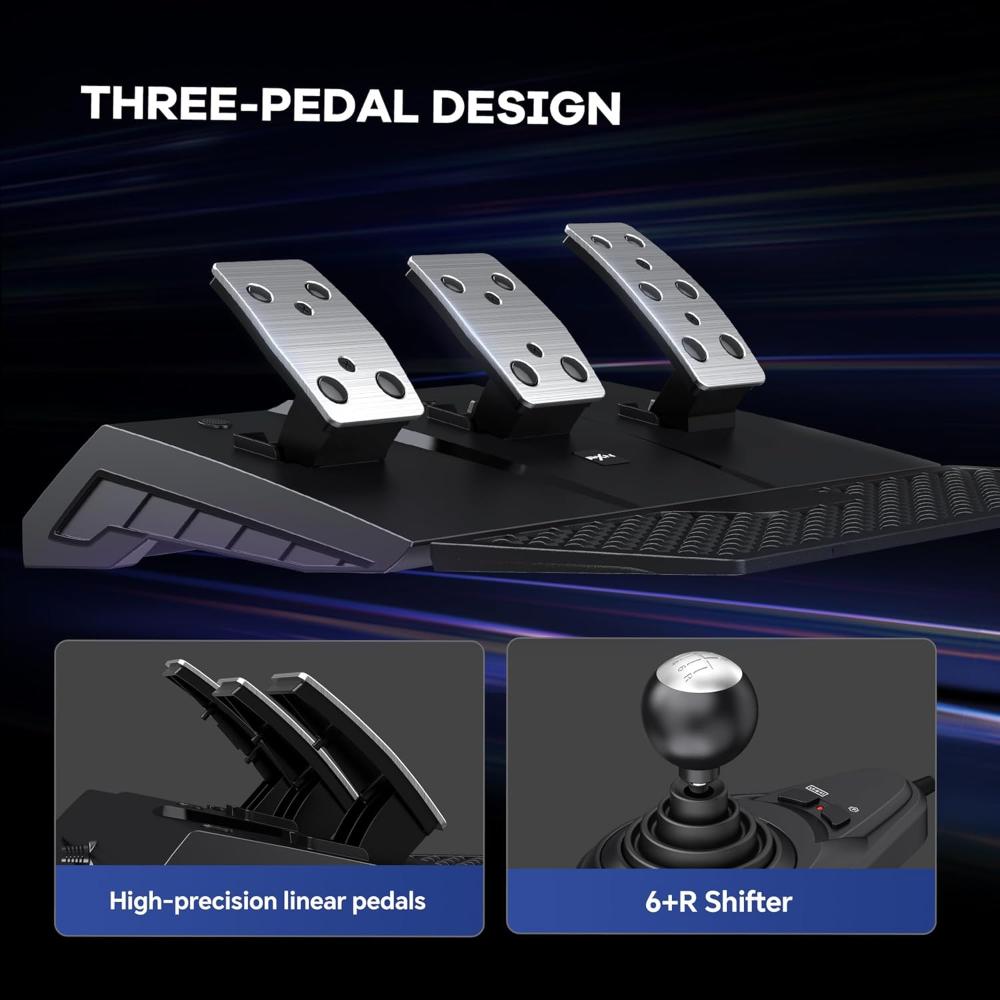 3-Pedal Set – Includes accelerator, brake, and clutch for authentic racing control