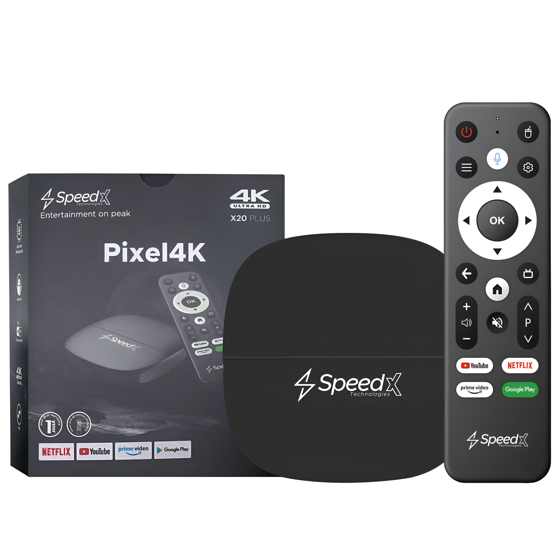 The Speed-X Pixel 4K X20 Plus is a high-performance Android Smart TV Box that transforms your regular TV into a 4K Ultra HD entertainment hub. With Android 10.0, voice control support, and seamless streaming compatibility, this device delivers an exceptional multimedia experience for your home.