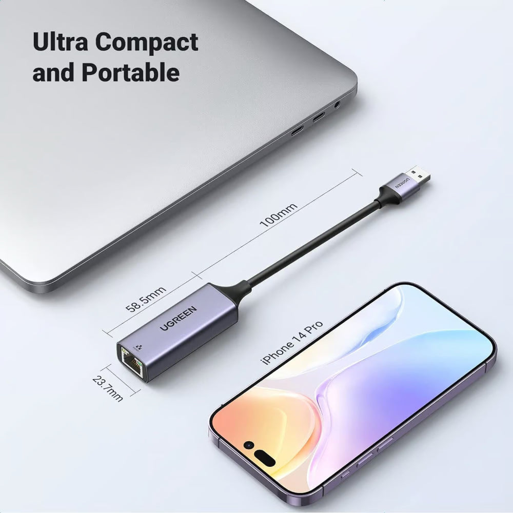 UGREEN 50922 | USB 3.0 to Gigabit Ethernet Adapter | 10/100/1000Mbps | Plug & Play | Aluminum Alloy | For Laptop, PC, MacBook, Surface, Chromebook