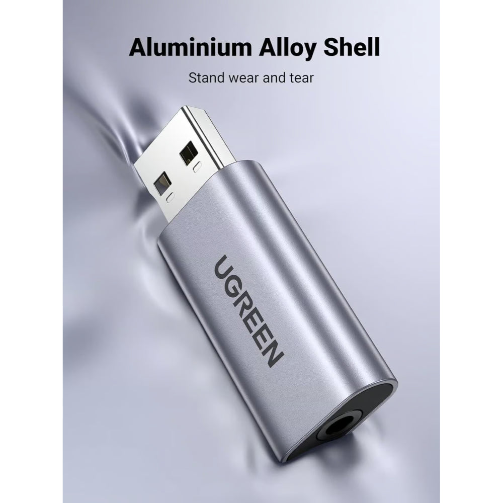 The UGREEN 80864 is a compact USB external sound card that adds or restores 3.5mm audio functionality to computers and gaming consoles. With a single TRRS combo jack, it supports stereo output and microphone input via compatible headsets.